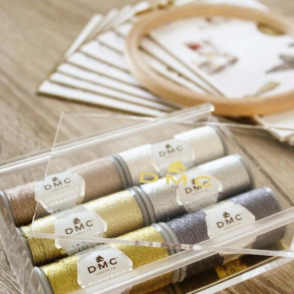 Cofanetto da collezione in edizione limitata presenta sei brillanti tonalità del filato Diamant Grandé DMC. Questo opulento filato metallizzato a 6 capi non divisibili, flessibile e resistente, darà un’eccezionale brillantezza e una luminosità simile al diamante ai tuoi progetti di ricamo tradizionale, di punto croce e tombolo.