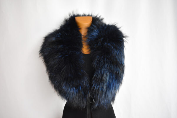 Collo in vera pelliccia murmasky foderato in raso, colore blu, modello sciallato, misura del collo cm 115 con nastro di raso per essere staccato e posizionato su più capi