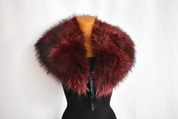 Collo in vera pelliccia murmasky foderato in raso, colore rosso bordeaux, modello sciallato, misura del collo cm 105 con nastro di raso per essere staccato e posizionato su più capi