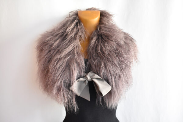 Collo in vera pelliccia mongolia foderato in raso, colore tupe, modello sciallato, misura del collo cm 0,85 con nastro di raso per essere staccato e posizionato su più capi