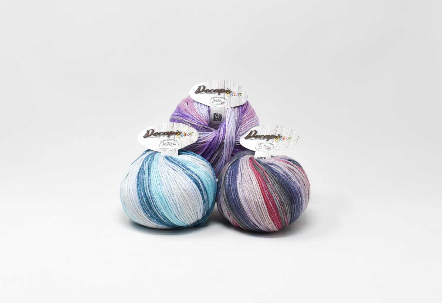 Decapè Color si presenta in gomitoli da 100 gr e misura 170 mt circa, è un cotone pima sfumato e multicolore di qualità superiore. Il cotone pima è ricavato da una varietà di pianta di cotone dalla fibra lunga e conferisce resistenza al filato. Morbidissimo e mediamente ritorto, questo cotone è ideale per creare capi d’abbigliamento e scialli ai ferri e all’uncinetto. Si consiglia di lavorarlo con ferri e/o uncinetto da mm 4,5 – 5.