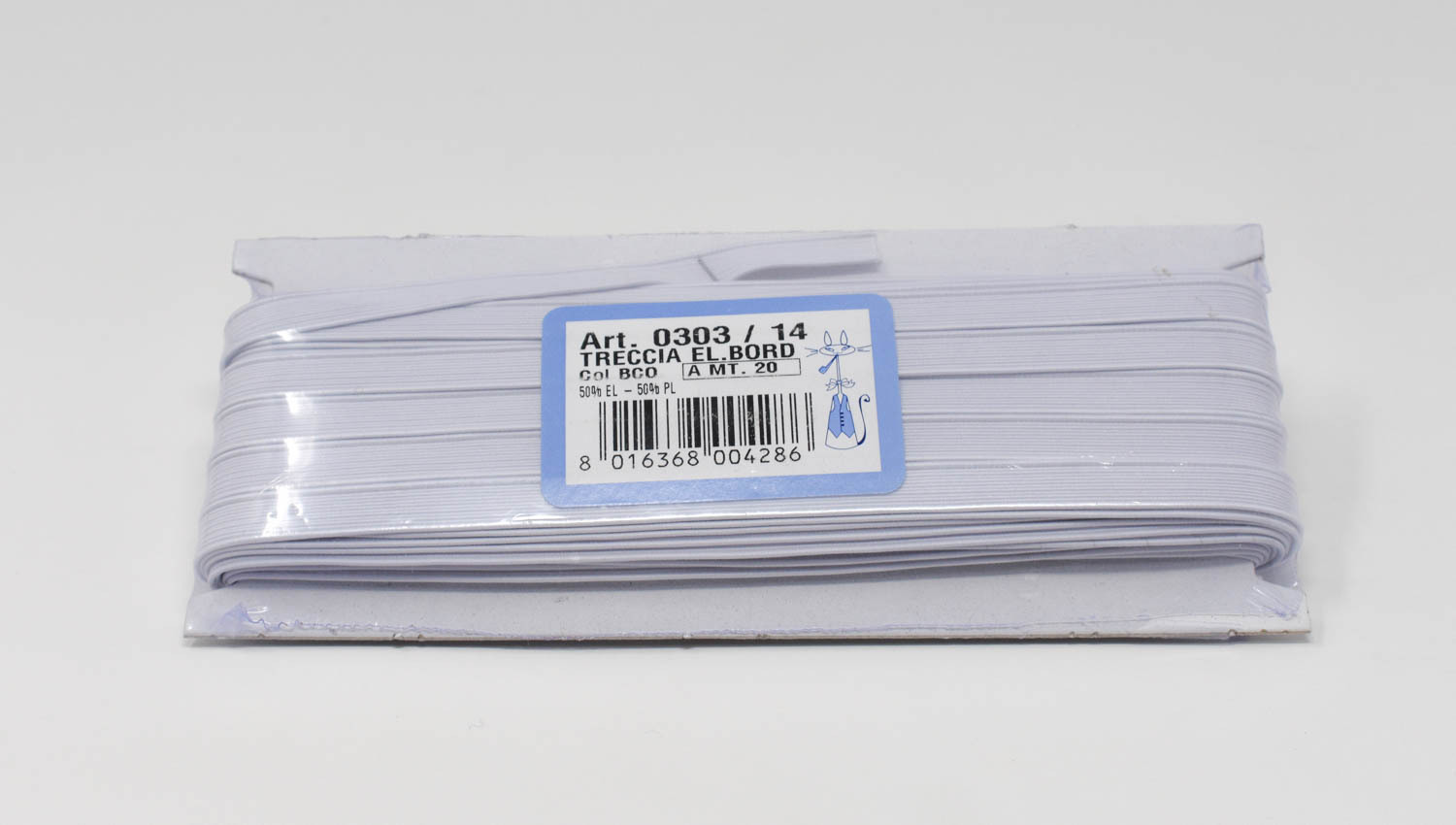 Elastico piatto colore bianco, molto resistente alto 9 mm adatto per abbigliamento, indumenti da lavoro, maschere, scarpe.