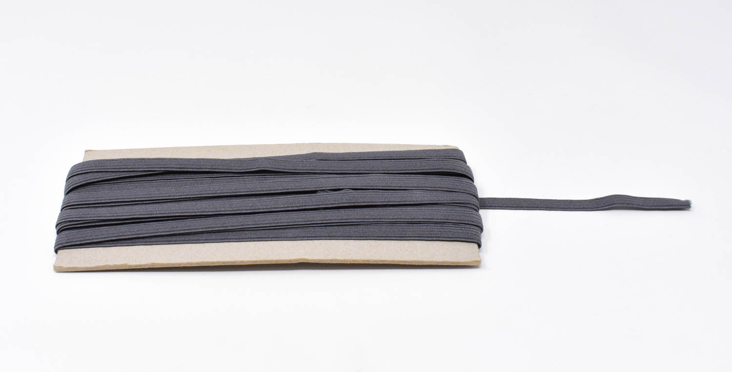 Elastico piatto colore grigio scuro, molto resistente alto 6 mm adatto per abbigliamento, indumenti da lavoro, maschere, scarpe.