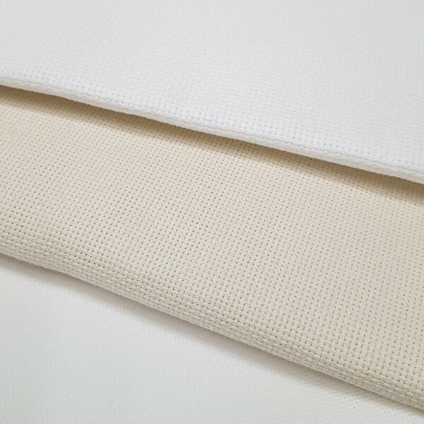 La tela aida è una tela di cotone realizzata appositamente per il punto croce. La sua tessitura precisa forma un quadrettato che permette di guidare il passaggio dell’ago e di ottenere facilmente delle crocette nette e regolari. La trama è regolare e quindi facilmente lavorabile anche da principianti e in 10 cm si possono contare circa 55 quadretti: questo permette di calcolare le dimensioni dello schema direttamente sulla tela senza alcuna difficoltà, è una misura standard che consente una lavorazione a tre fili con il filato Moulinè. Altezza della tela cm 180.